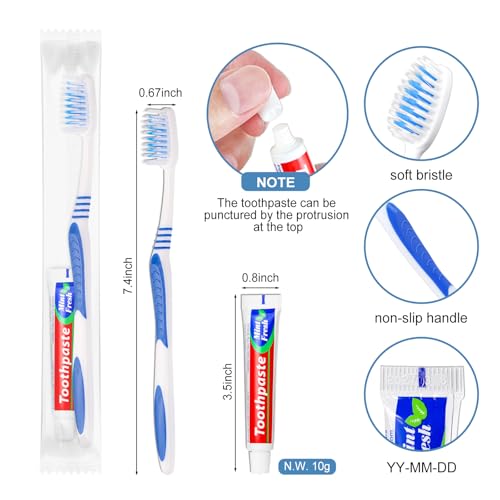 - ON-THE-GO ORAL ESSENTIAL: Individually Wrapped Toothbrush and Toothpaste Sets are wrapped individually and separately, a good way to keep these brushes in order and keep them in clean condition. Individually sealed package provides the possibility for you to store them separately in many places.