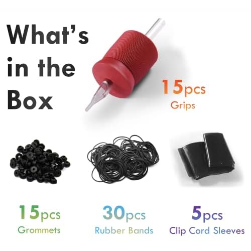 - ? Includes 15 individually packaged grip tubes for single use only, 30 rubber bands, 15 rubber grommets, and 5 clipcord sleeves.