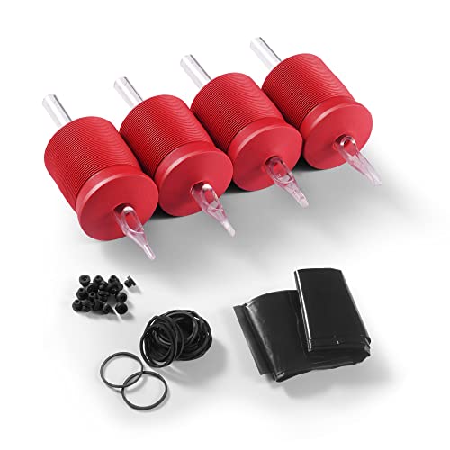 1.25 Inch Ultra Premium Red Soft Silicone Grip w/Long Clear Disposable Tubes & Tips- 15 Pack, Diamond Tip (5DT)