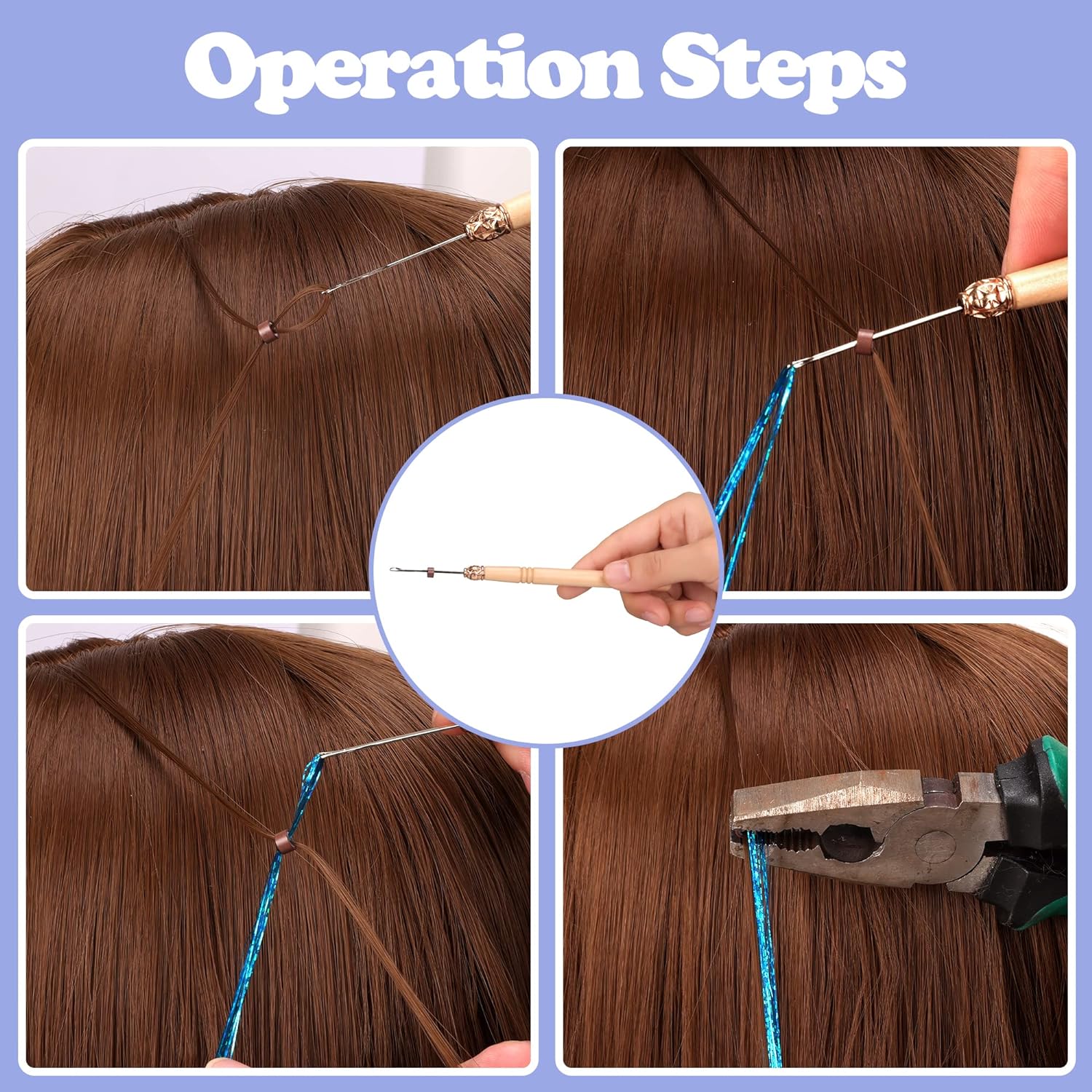 - 【Hair Extension Tinsel Kit】Set in 16 colors of fairy hair, about 3300 strands in total (Each color has 200-220 strands). Come together with 2 pieces crochet and 100 pieces of micro silicone link ring beads.