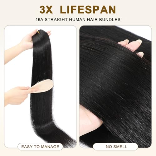 - Human Hair?Bundles Straight Color: Natural Black Color Human Hair Bundles 3x Longer-Lasting Than Regular Virgin Hair, Can Be Curled, Bleached, Dyed, Permed, Highlighted, Durable, Reusable and Styled as Your Own Hair. Easily Blends Perfectly With Your Original Hair.