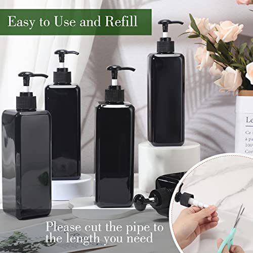 20 Pack 16oz/ 500ml Plastic Empty Bottles Refillable Shampoo Containers with Pump Lightweight Square Soap Dispenser Bottles for Essential Lotions, Shampoos, Conditioner, Massage Oil (Black)