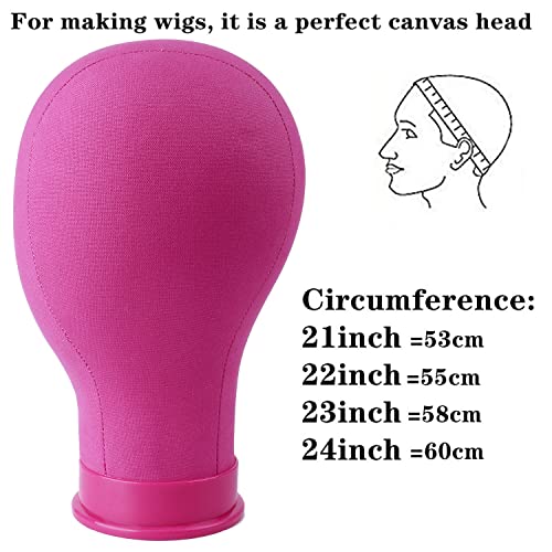22 Inch Canvas Block Head Pink Wig Head with Wig Stand Tripod Mannequin Head Stand for Wigs Trimming Making Display.(22 Inch Pink)