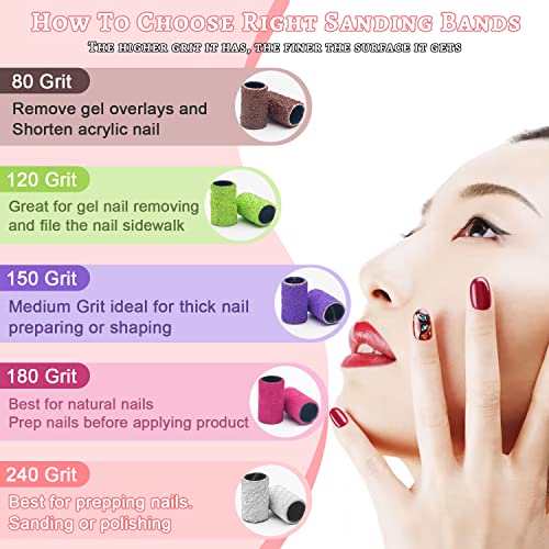 - RELIABLE SANDING BAND NAIL - Our sanding band using high quality glue to make the sanding paper¡¯s gap glued completely, not easily unraveled. It¡¯s thickened and hardened, tightly grip the nail drill bit, ensure the sand band will not easily fly out