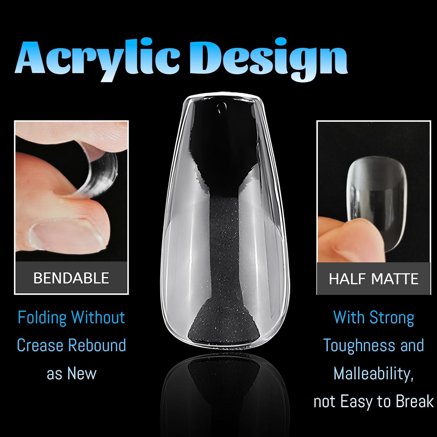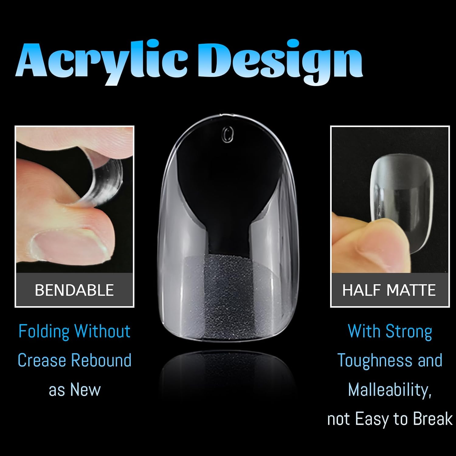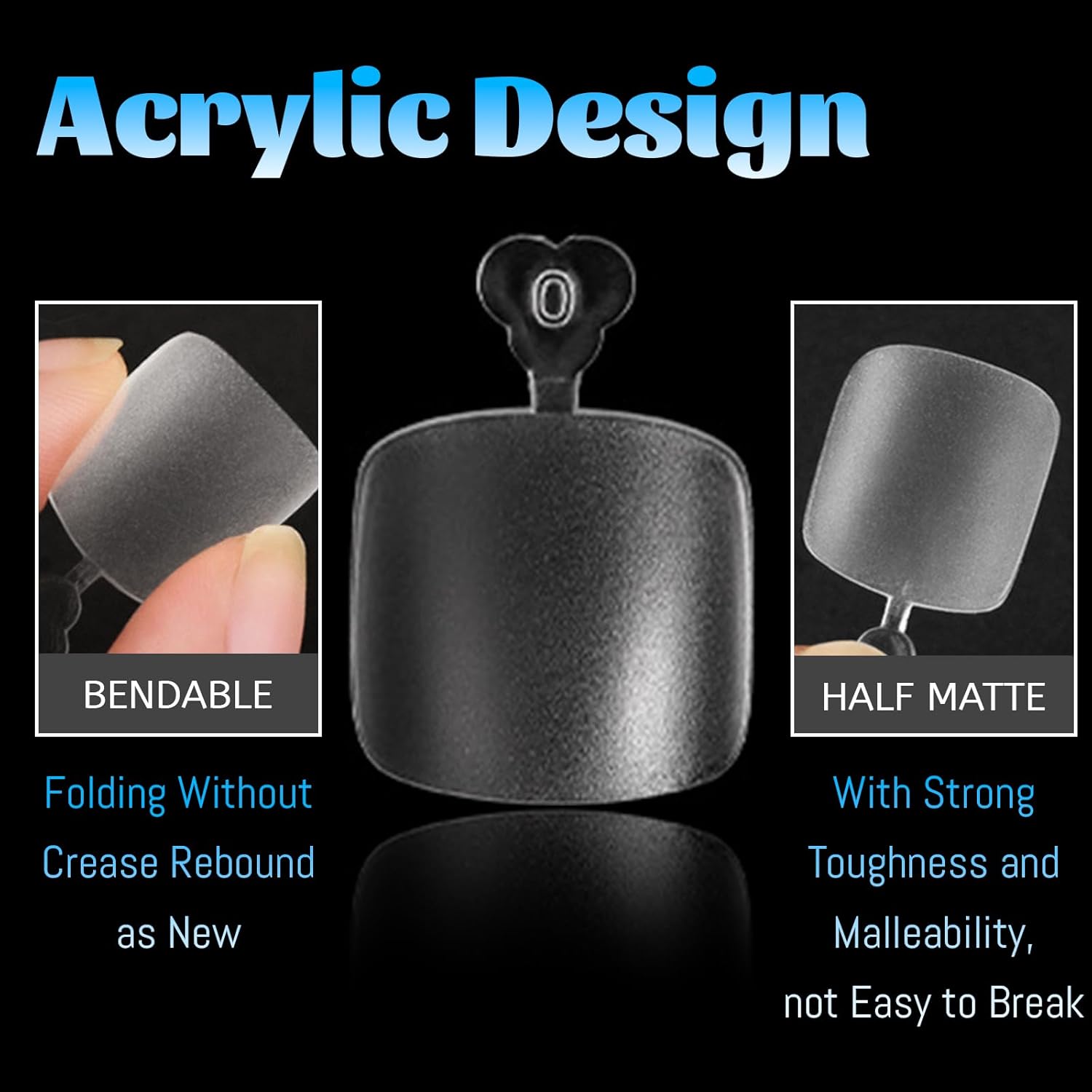 Acrylic nail tips with half matte design no need to file with nail drill or nail file, gel nails extensions with nail glue can be glue on nails easy. Gel nails tips with bright clear surface can better display gel nail polish effect, give you better nail design effect.