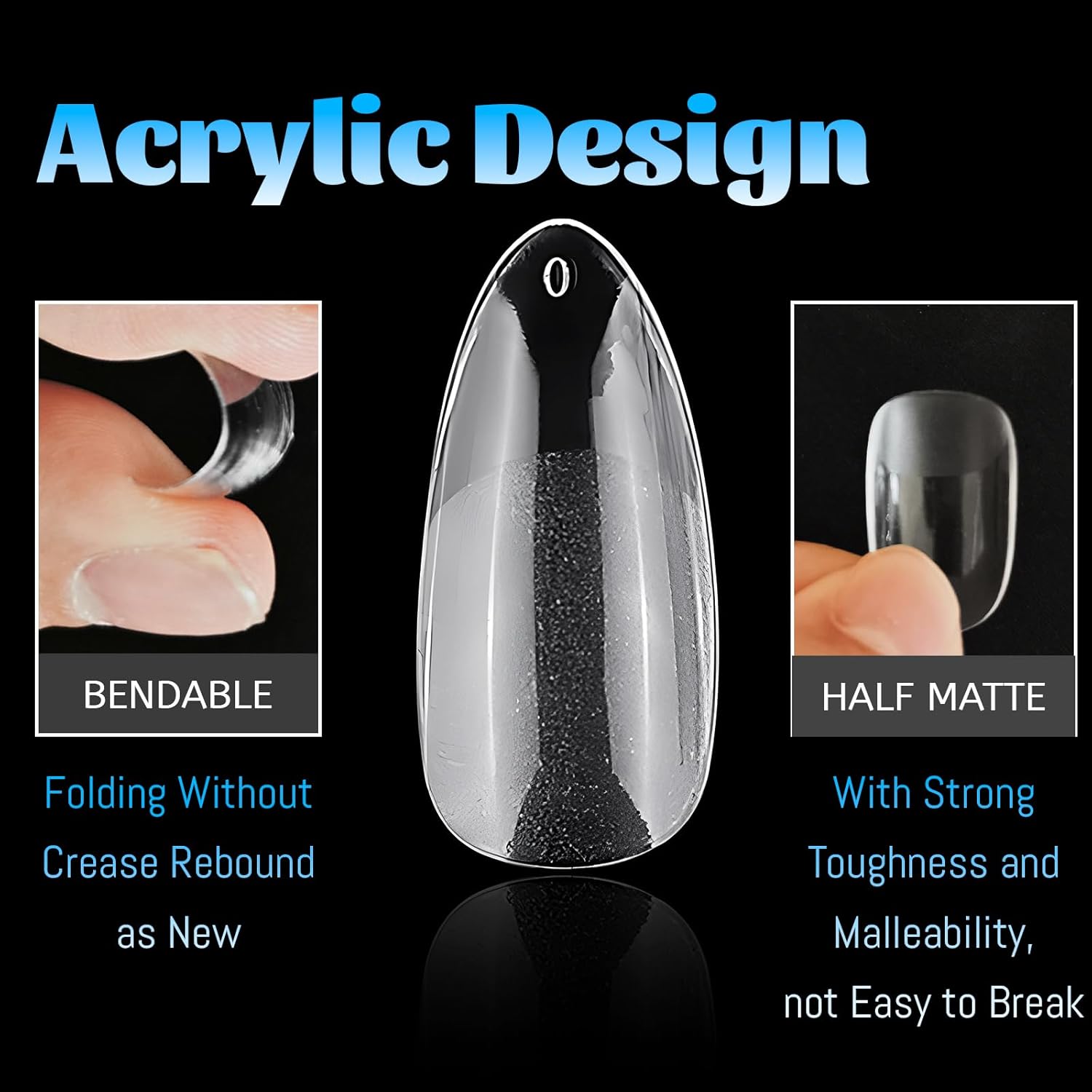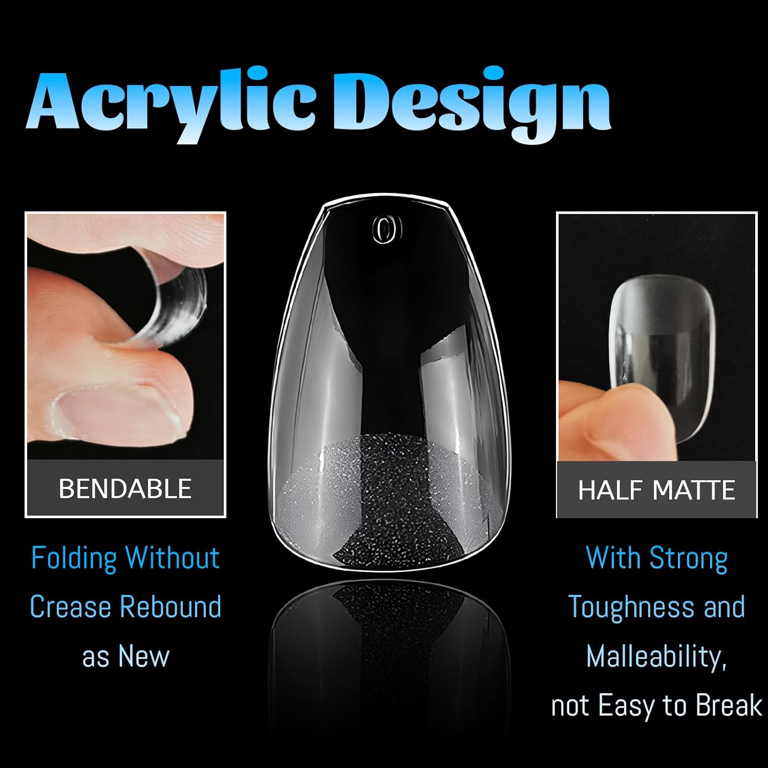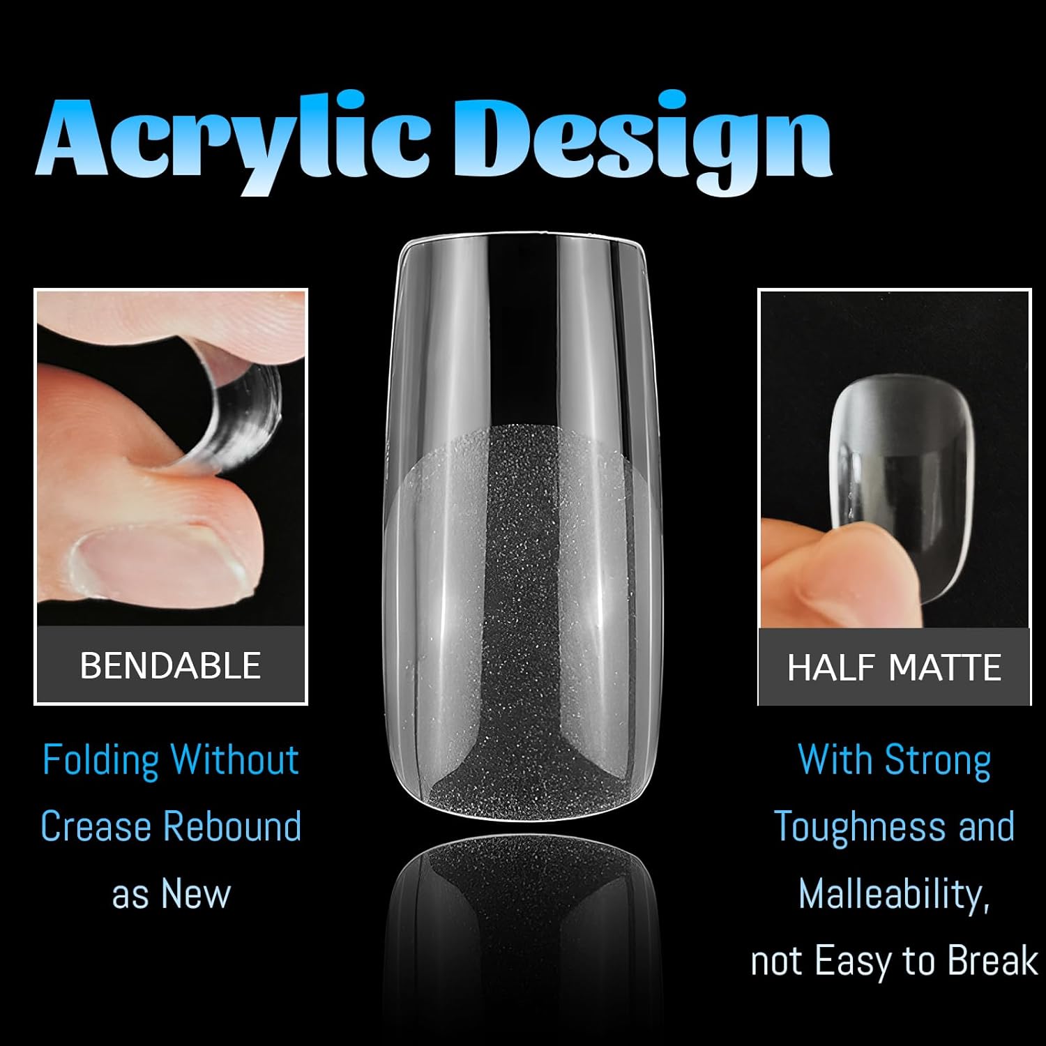Acrylic nail tips with half matte design no need to file with nail drill or nail file, gel nails extensions with nail glue can be glue on nails easy. Gel nails tips with bright clear surface can better display gel nail polish effect, give you better nail design effect.