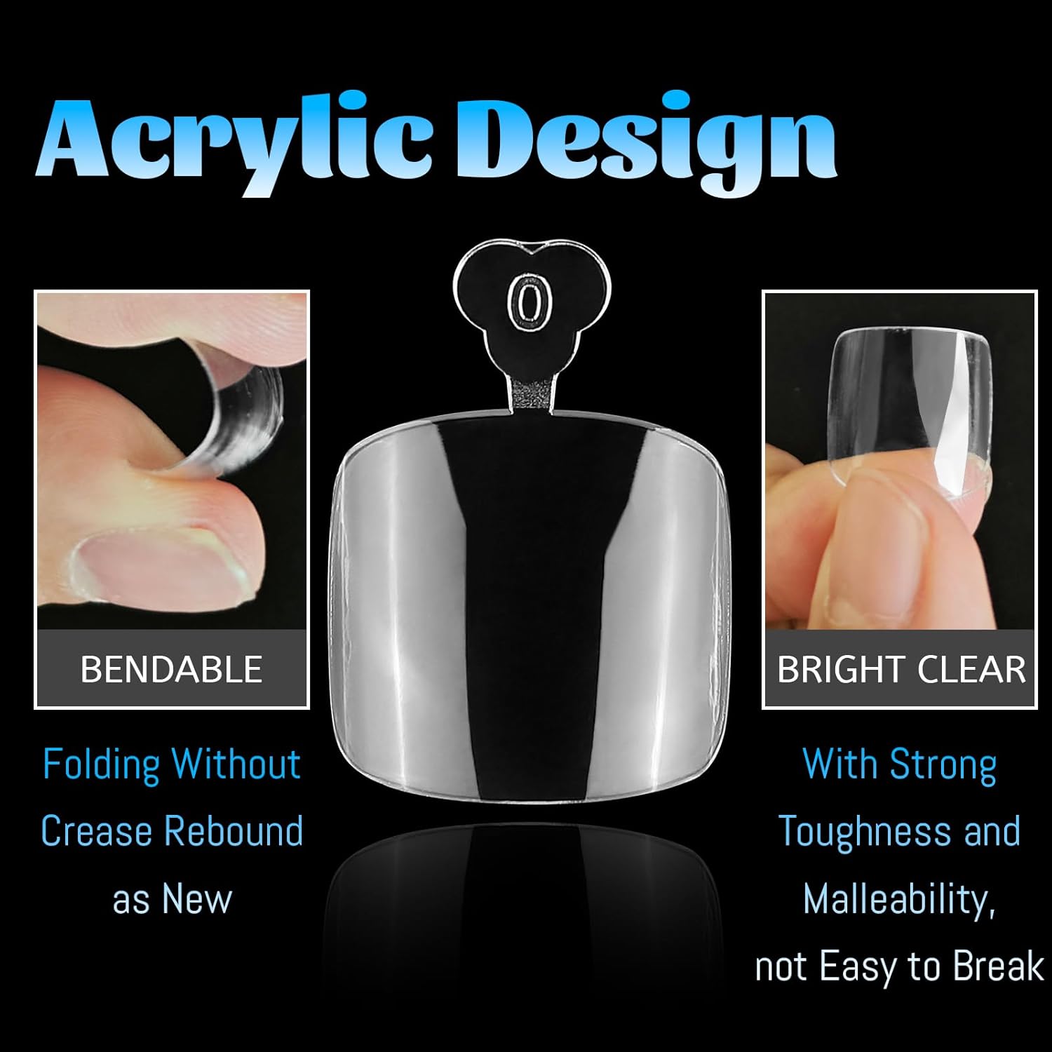 - Pre-shaped clear nails extension tips: medium square gel tips are pre-shaped for easy apply to nail beds, and fit nail bed from cuticle to free edge perfect without any separation or exposure. Press on nails clear false nail tips also design with thin back smooth-edge fit your nails comfortable and naturally, strong thick front edge of artificial nails with better break resistant ensure gel nail tips not easy to break, prolongs service life
