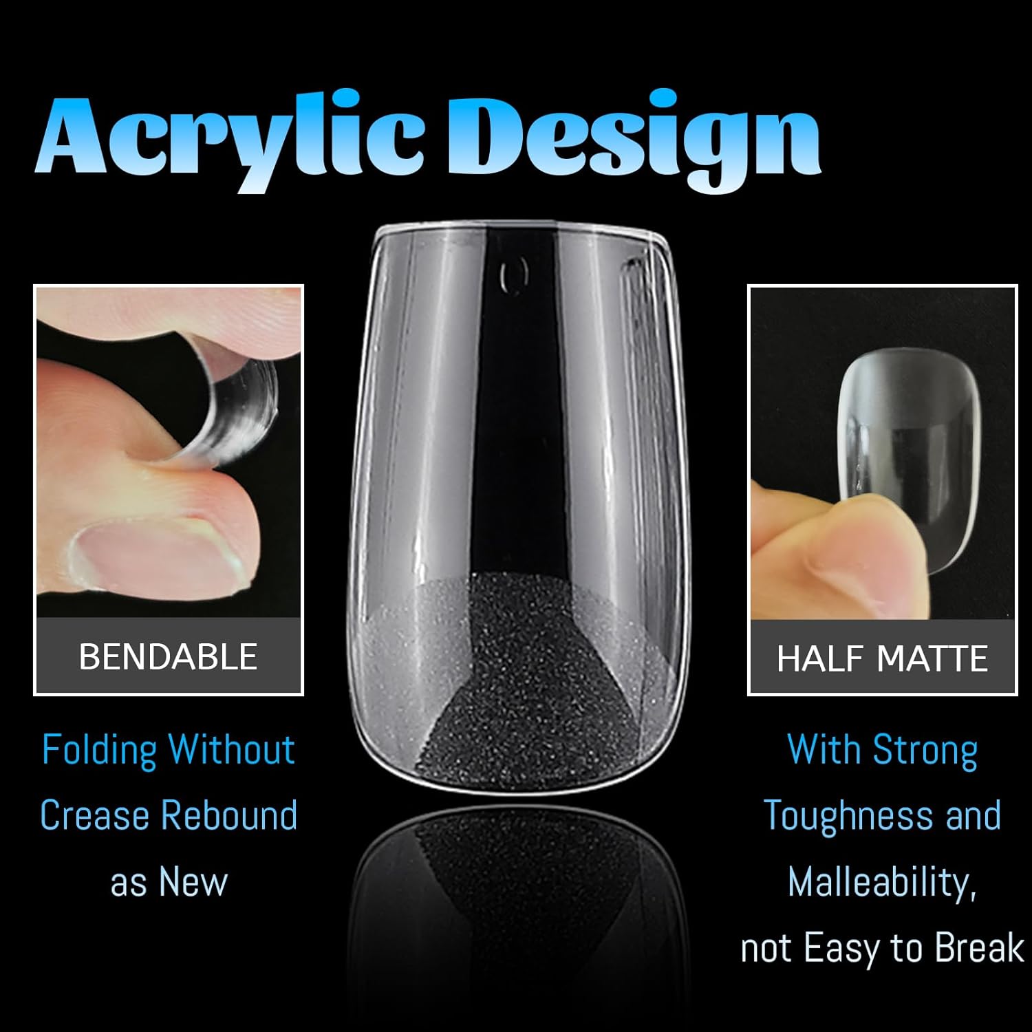 - Half matte clear nail tips full cover: medium square nail tips gel with pre etched design for increase friction, perfectly grip your natural fingernails, you can apply medium gel nails for nail extensions directly without file nails, no file nail tips reduces damage to your fingernails. Our medium full cover nail tips square shape will give you the most comfortable and natural feeling.