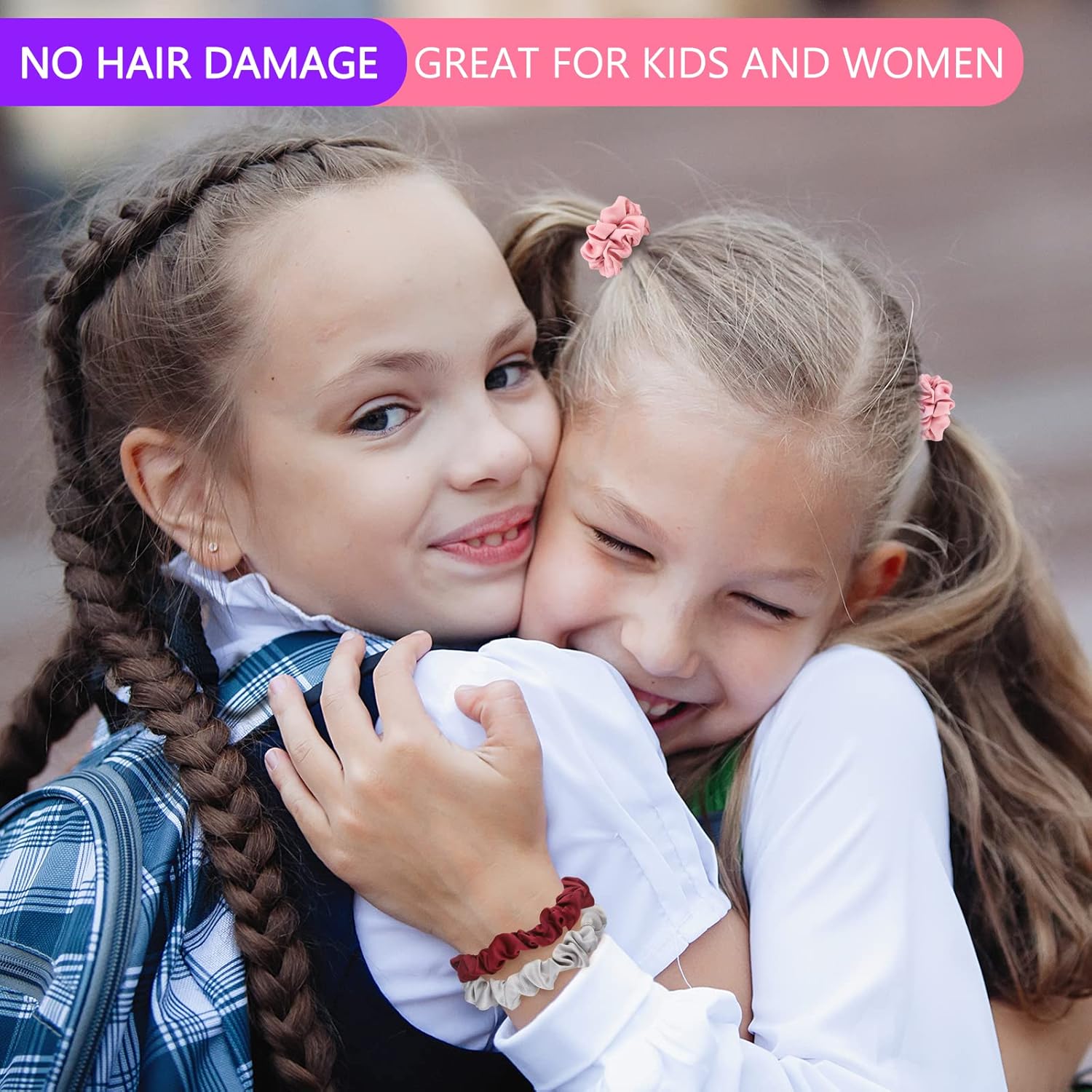 - π Pain-Free & Damage-Free: Our pain-free, smooth silk satin wonβt snag or pull your hair. Keeping you comfy and unique all day long. Strong Hold: Easily stretch and recover quickly of rubber band can hold your hair tightly while working, learning or playing. These silk scrunchies for women is highly elastic and easy to put on and take off without snagging, tangling or pulling.