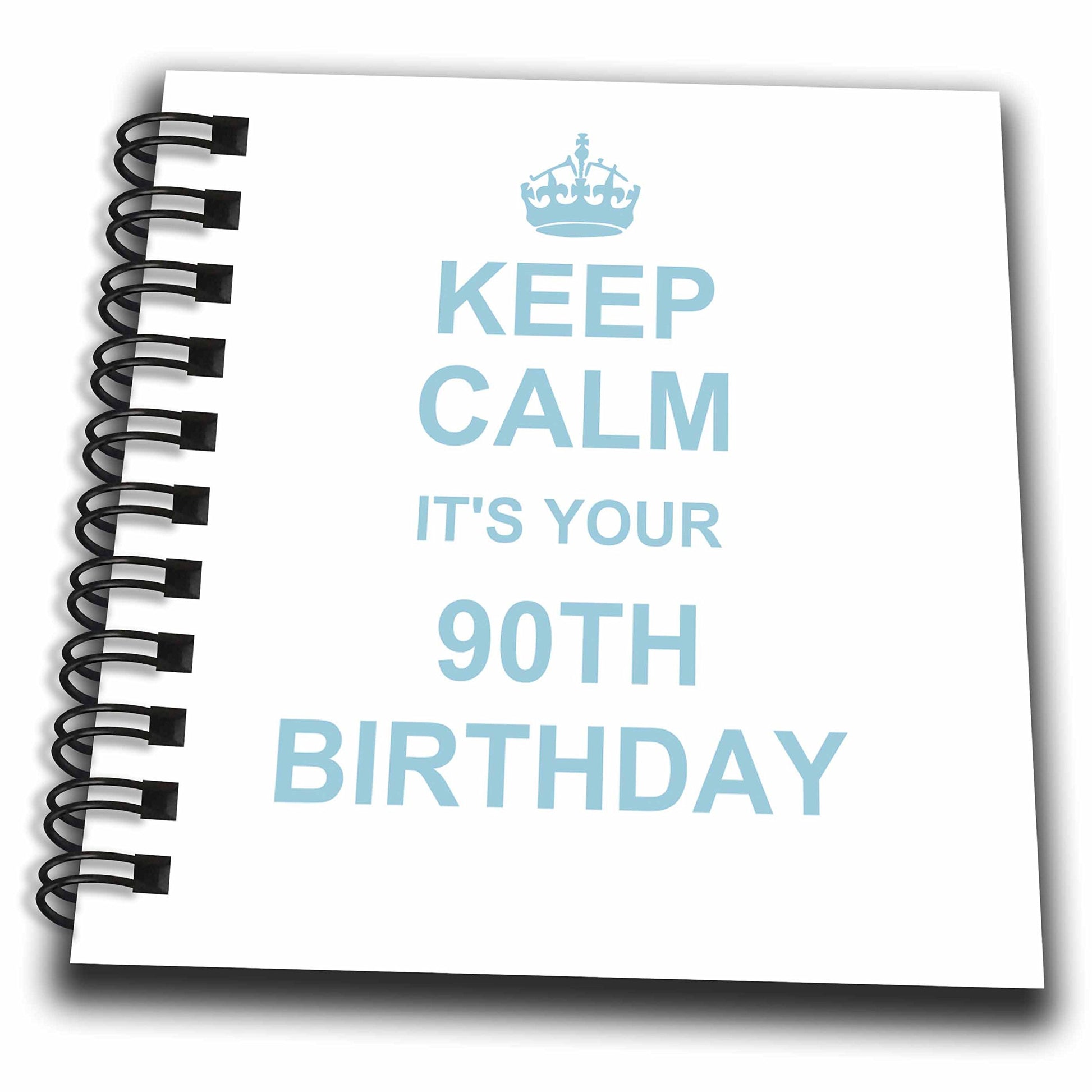 Details: Keep Calm its your 90th birthday - blue - funny stay Calm and carry on about turning 90 - humor drawing book is a great way to start sketching, drawing, designing, scrapbooking, or just jotting down your thoughts. This unique spiral bound hard covered book includes acid free bright white paper and features twin loop wire spring binding. Our memory and drawing books are a great alternative to the standard photo album or notebook. While our mini notepad is a great size for keeping in your purse, car, briefcase or on the go. Perfect for use with crayons, markers, paints, pastels, stickers, pencils and pens. Great as a gift for any occasion. Enjoyed by all ages.