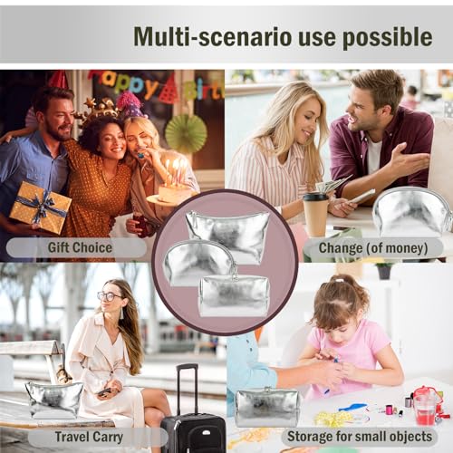 3pcs Make up Bag Set Travel Makeup Bags for Women Leather Cosmetic Bag Toiletry Organizer Bag Personalized Makeup Pouch Skincare Bag Silver