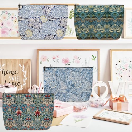 4 Pieces Makeup Bag Classic Flower Botanical Floral Washable Skincare Bag Travel Toiletry Bag Makeup Pouch Cosmetic Bag Birthday Friendship Gifts for Women Supervisor Friends Bestie Coworker Manager