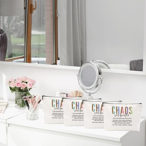 4pcs Chaos Coordinator Makeup Bag Chaos Coordinator Gifts for Women Cosmetic Bag, Thank You Gifts for Women Her Moms Manager Colleagues Retirement Boss Gift, Makeup Pouch Zipper Bags