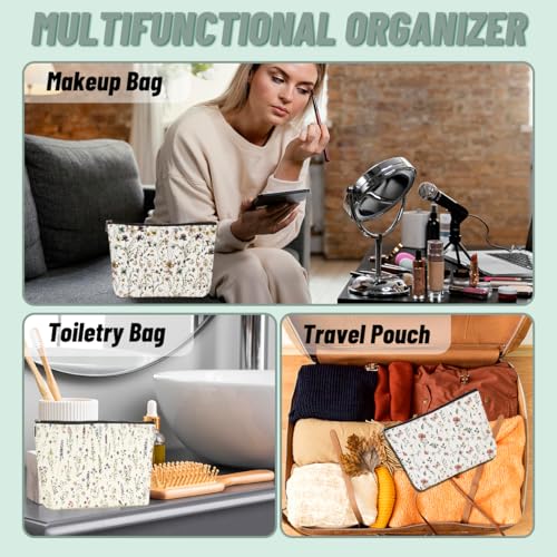 4PCS Floral Makeup Bags for Women, Cute Flower Aesthetic Travel Toiletry Bag, Coquette Cosmetic Bag, Portable Zipper Pouch Cosmetics Pouch Gifts for Women Girls Girlfriend Mom