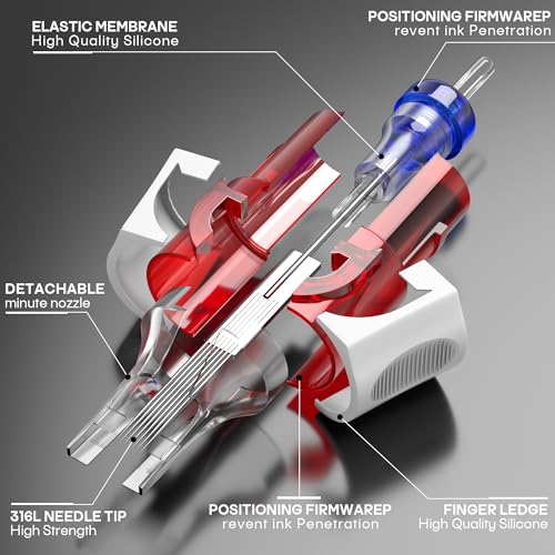 - FINGER LEDGE DESIGN: Includes finger edge design with high-quality silicone for comfortable handling and precise control,This attribute contributes to achieving more accurate and reliable outcomes in their tattoo.Our tattoo needles have a consistent production process for each one, and standardized production is applicable to all standardized tattoo machines. You won't feel troubled by the incompatibility between tattoo needles and machines