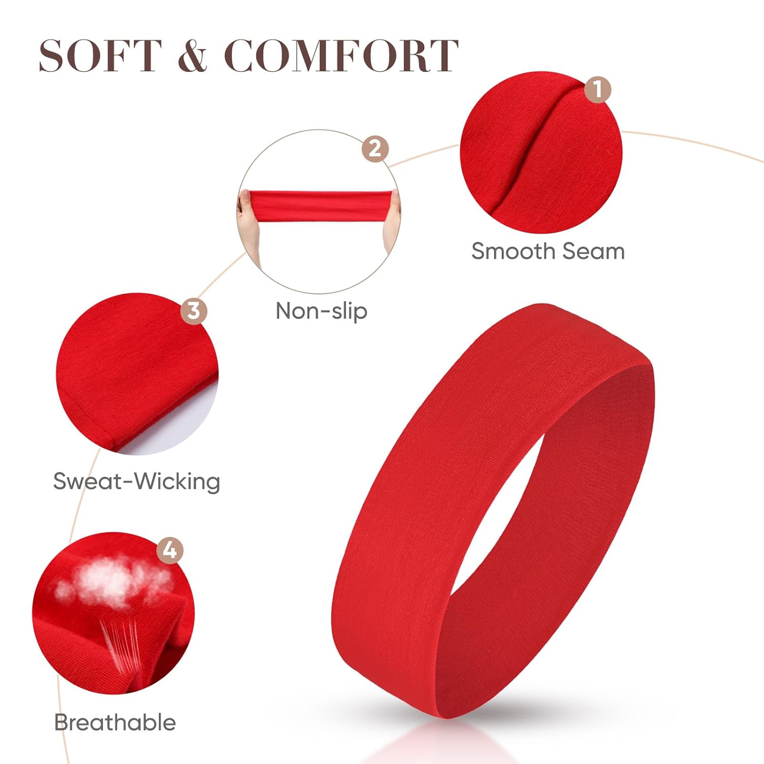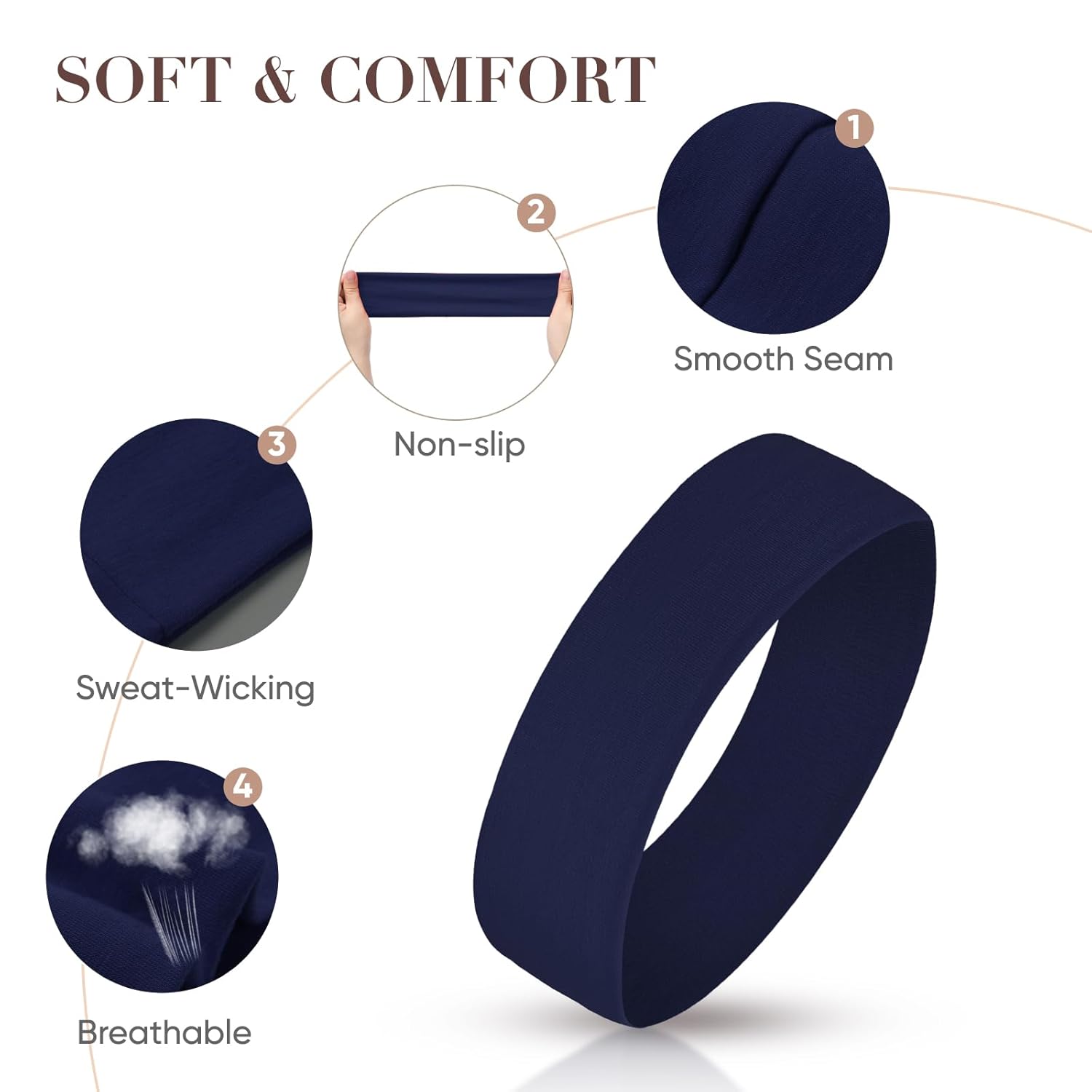 9 Pack Headbands for Women Non Slip - Fabric Elastic Hair Bands for Women's Hair, Soft Cotton Cloth Stretchy Sport Headbands, Sweat Absorption Athletic Hairbands for Workout Yoga Running - A