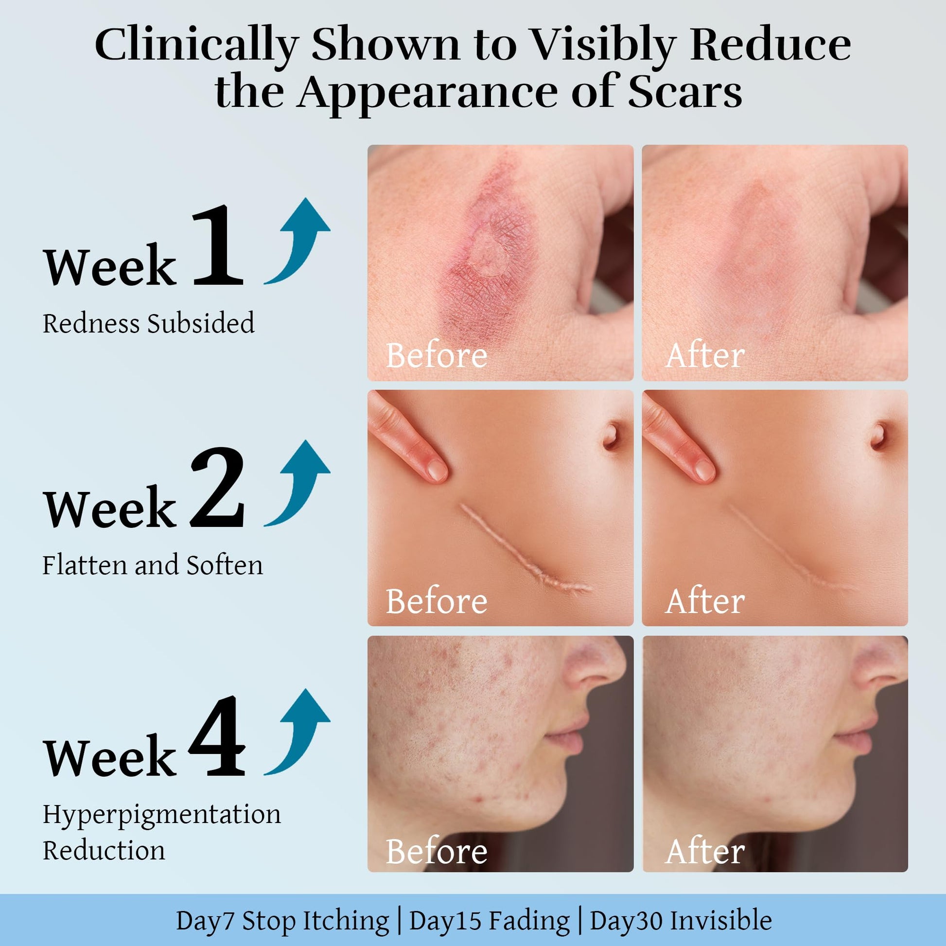 - Suitable for all kinds of scars: This advanced scar gel will improve the redness, texture and overall appearance of scars. Specifically targeting five types of stubborn scars: postoperative hypertrophic, burns, acne pits and depressions, stretch marks, scratches and abrasions, etc