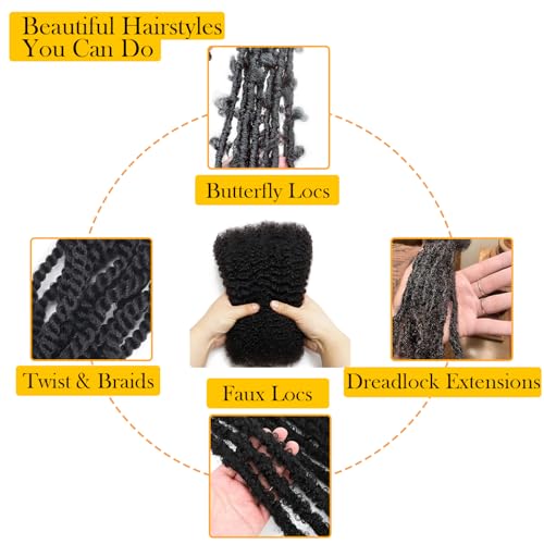 Afro Kinkys Bulk Human Hair 20Inch 60g/pack 100% Natural Black Human Hair For Making Micro Locs, Twists, Braids, Dreadlocks Extensions, Locs Repair, Crochet Braiding Hair