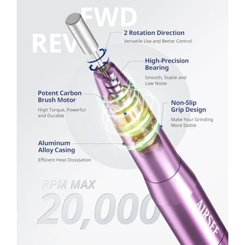 - Low Vibration and Low Noise: The spring-loaded construction of this nail drill makes it quiet and low vibration. The ultra-quiet operation of less than 40 decibels allows you to practice your routine without disturbing others