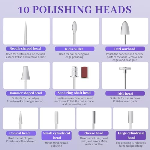 - Interchangeable Bits & Quiet Operation: Comes with assorted sanding bits, rings, and grinders for every task. Powerful yet low-noise motor with smart cooling stays quiet and cool. A complete electric nail filer set?great gift for nail lovers!