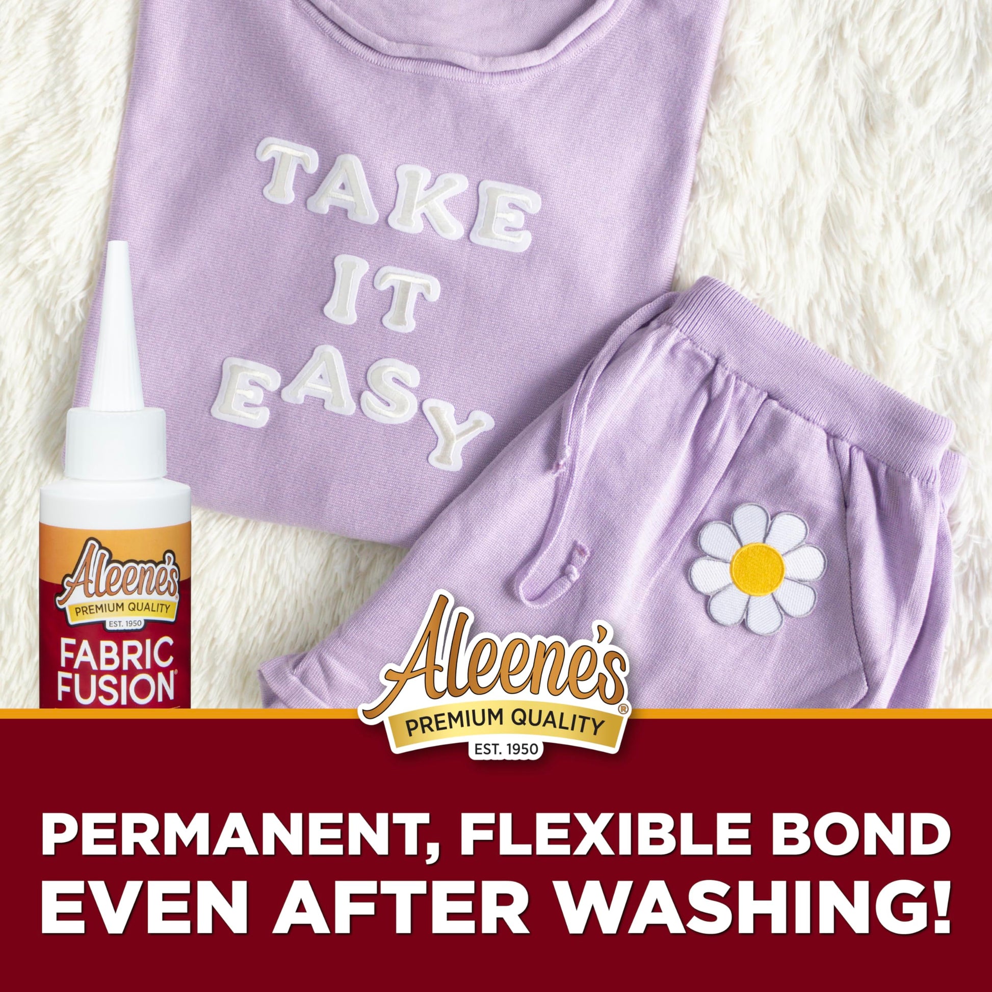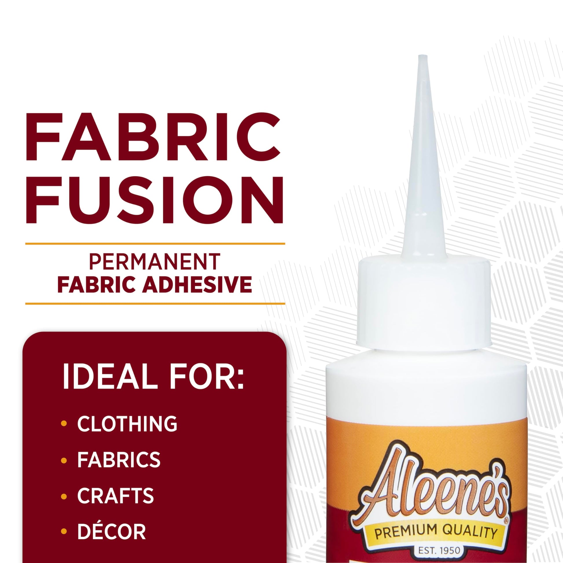 Details: Aleene's Fabric Fusion Permanent Fabric Adhesive offers fabric crafters and fashion artists an easy alternative to a needle and thread! This clear, water-based adhesive is nontoxic and machine washable, creating a permanent, flexible bond between fabrics and other embellishments, wash after wash. From clothing to crafting, trust your fabric projects with Aleene's Fabric Fusion Permanent Fabric Adhesive.