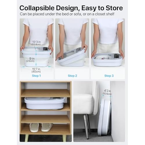 - Foldable Foot Bath: The foldable design allows this foot spa bath with heating and bubble functions to be folded to only 4.1 inches thick in seconds, without the help of any tools, easy to store, and saves space. It can be stored in any narrow corners, such as under the bed or in a closet, and is also suitable for outdoor use, such as camping, road trips, and travel