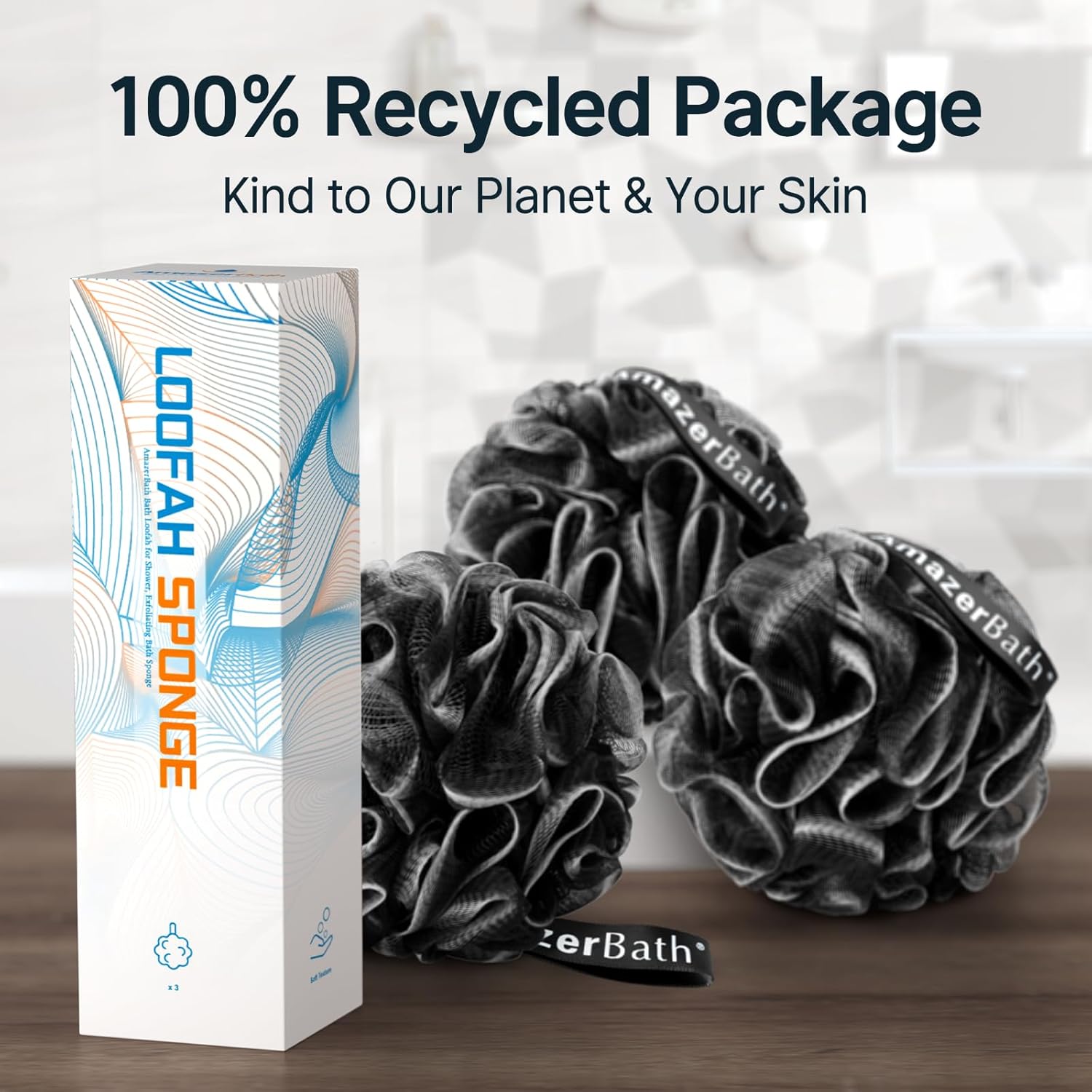 AmazerBath Loofah Sponge, Shower Loofah for Men and Women - Body Scrubber Loofa Set of 3 Classic Black & White Edge, Bath Sponge 60g/PCS