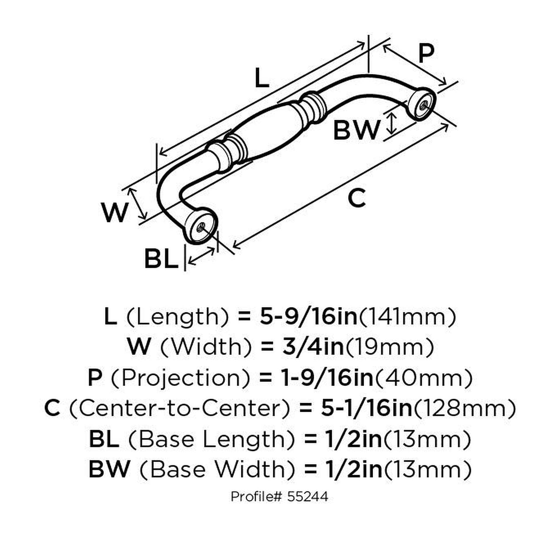 The Amerock BP55244ORB Granby 5-1/16 in (128 mm) Center-to-Center Pull is finished in Oil-Rubbed Bronze. Utilizing a smooth barrel center and gentle circular accents, The Granby Collection is shaped to accentuate doors and drawers with an eye towards stylish simplicity. The Oil-Rubbed Bronze finish is a rich, dark brown old world finish with striking light and dark accents. Amerock offers a complete line of decorative and functional cabinet hardware, bath hardware, hook and rail and wall plates. Amerock’s award-winning decorative and functional hardware solutions have built the company’s reputation for chic design accessories that inspire homeowners to express their personal style. Available in a variety of finishes and styles, Amerock offers high quality designs at affordable prices. Always Creating. Always Timeless. Always Amerock.