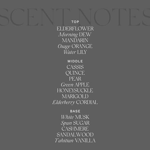 - Ethereal Spring: Glistening elderflower is enhanced by notes of pear, quince and osage orange, freshly picked off the branch; a translucent base of spun sugar and cashmere lends a lingering elegance