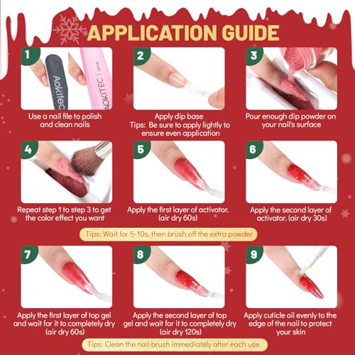 - Long-Lasting Brilliance: Aokitec dip powder nail set is formulated for extended wear, to give nails high endurance and long-lasting strength. This nail powder set can make your holiday manicure stays vibrant and chip-free during the holiday.