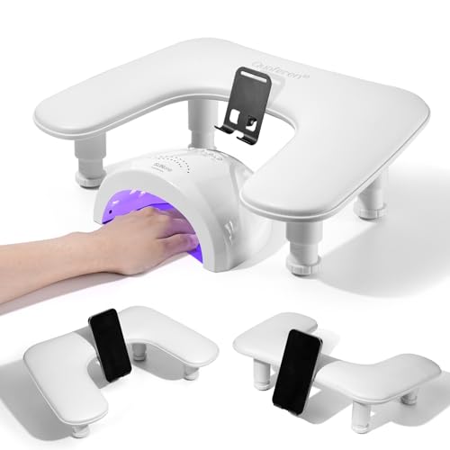 Arm Rest for Nails Tech: 3rd Generation Manicure Nail Arm Rest with Rotating Phone Stand, U-Shaped Height Adjustable Hand Rest Pillow for Acrylic Nails White