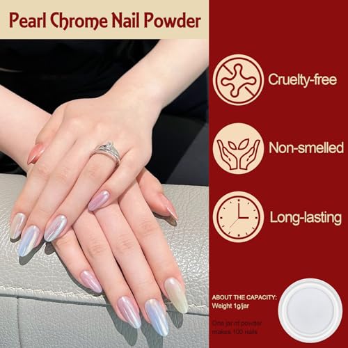 Artdone 16Jars Chrome Nail Powder Magic White Pearl Kit Mirror Effect Silver Metallic Holographic Dip Nail Powder for Resin Craft & Nail Art Fimo, Decoration Iridescent Aurora Mermaid Pigment