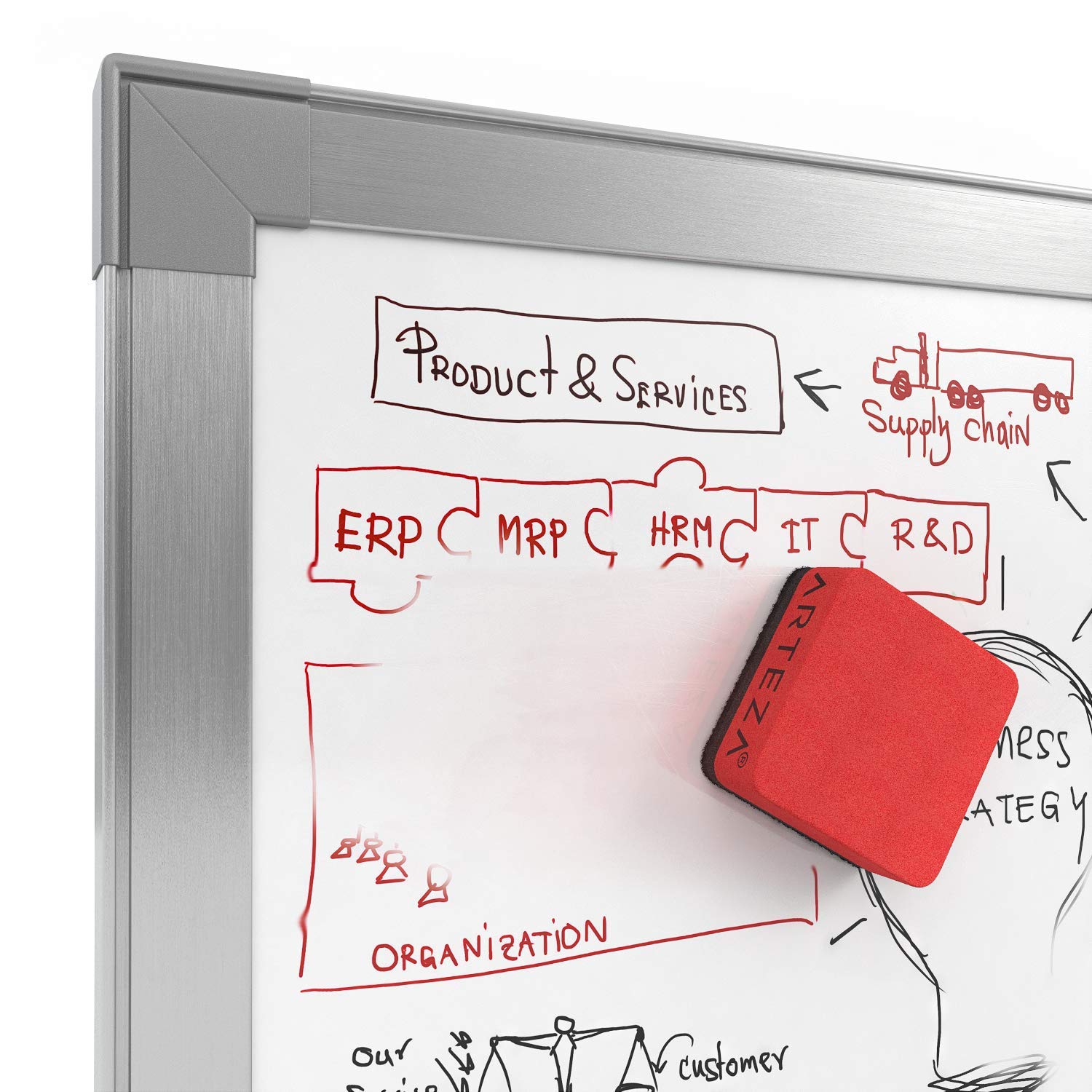 - The erasers have a firm magnet within them that allows them to adhere to your whiteboard or anything with a magnet.