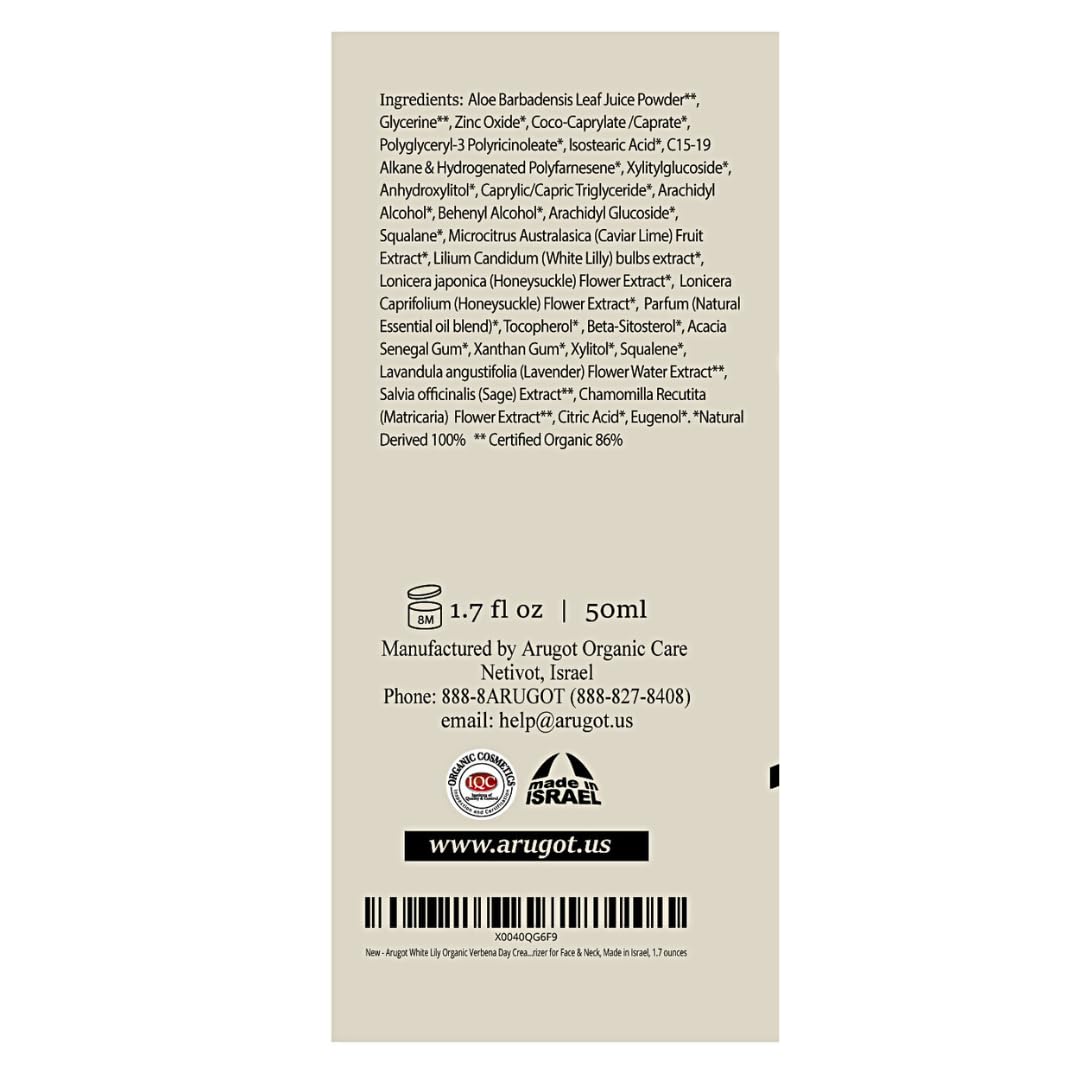 Arugot White Lily Organic Verbena Lightweight Day Cream for Acne & Pimple Prone Skin, Skin Clearing Moisturizer for Face & Neck, Made in Israel, 1.7 ounces