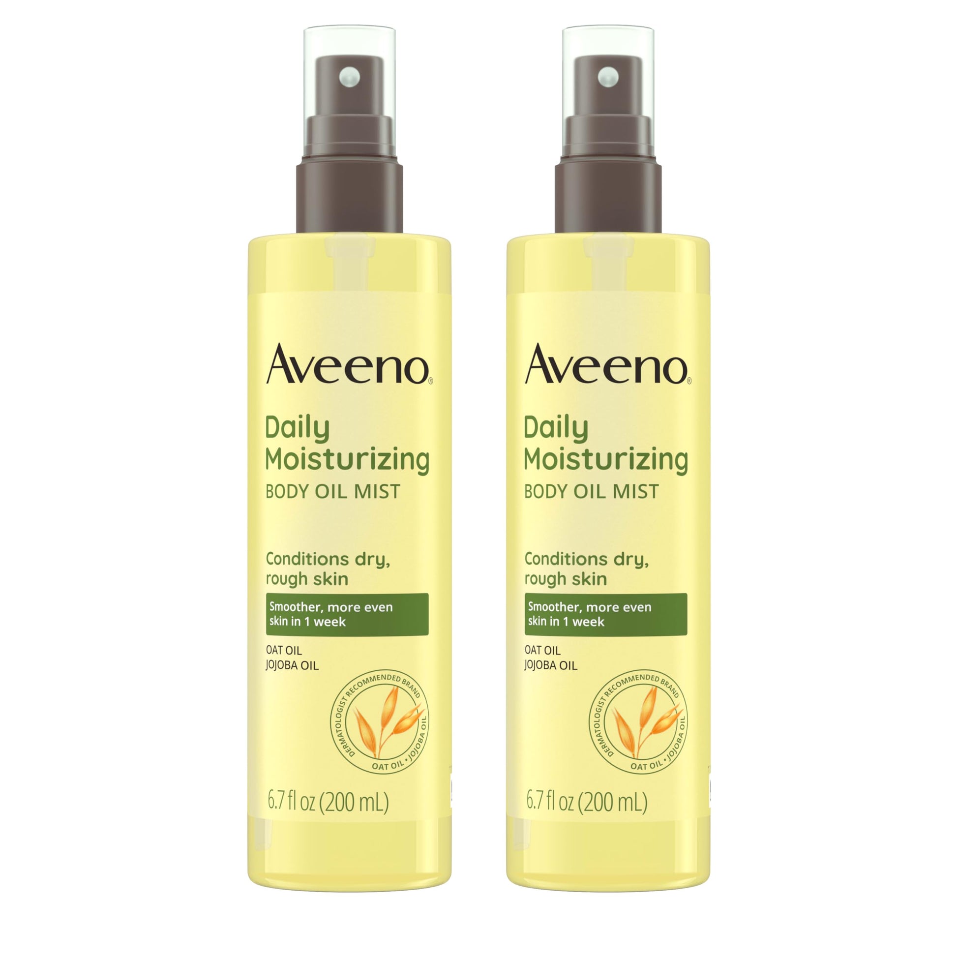 - Condition dry, rough skin: Twin pack of two, 6.7-fluid ounce spray bottles of Aveeno Daily Moisturizing Dry Body Oil Mist with oat oil and jojoba oils, to moisturize and condition dry, rough, sensitive skin