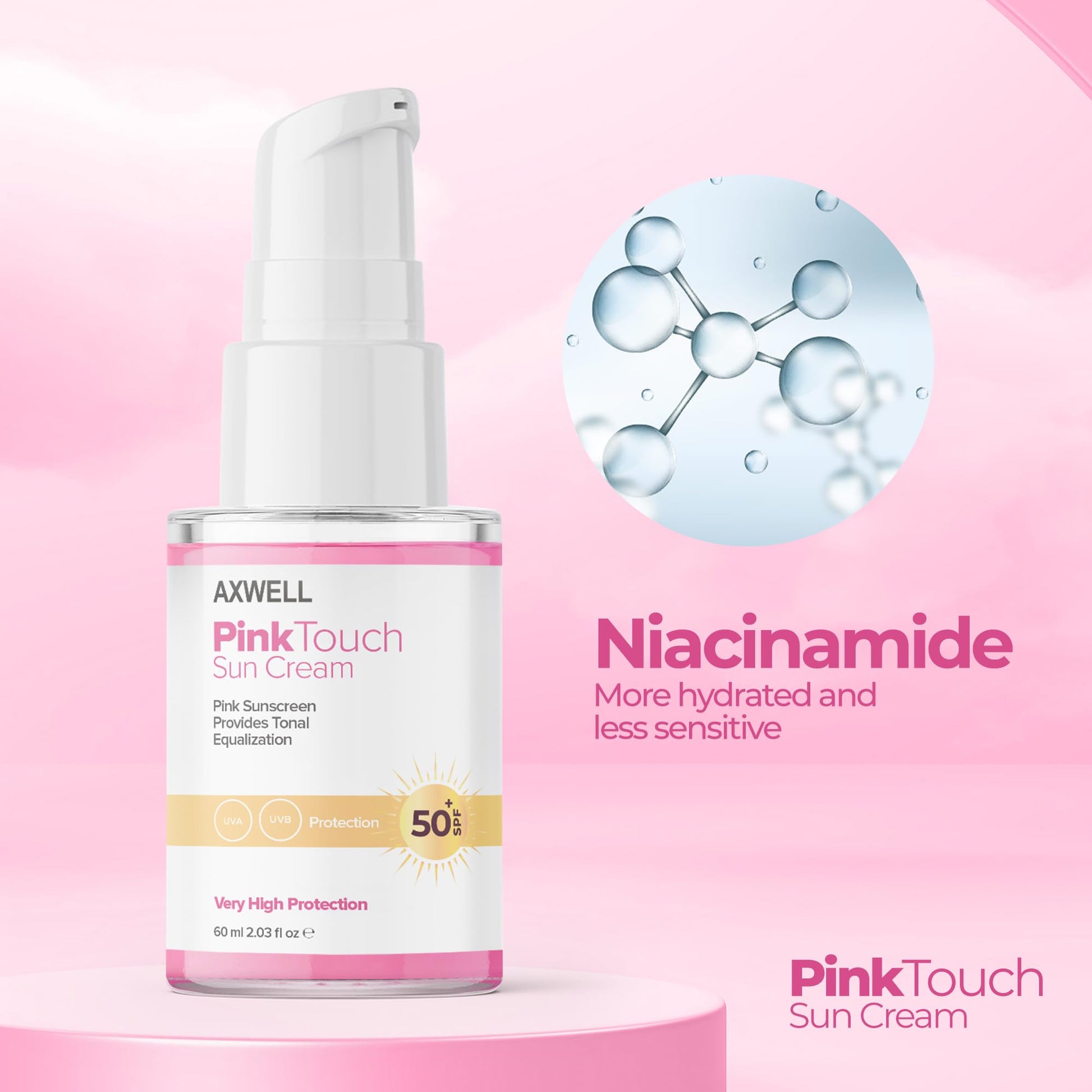AXWELL Pink Touch Tone Evening Pink Sunscreen, SPF 50+ Daily Sunscreen, Water Resistant, UVA/UVB Very High Protection(60 ml, 2.03 fl.oz)