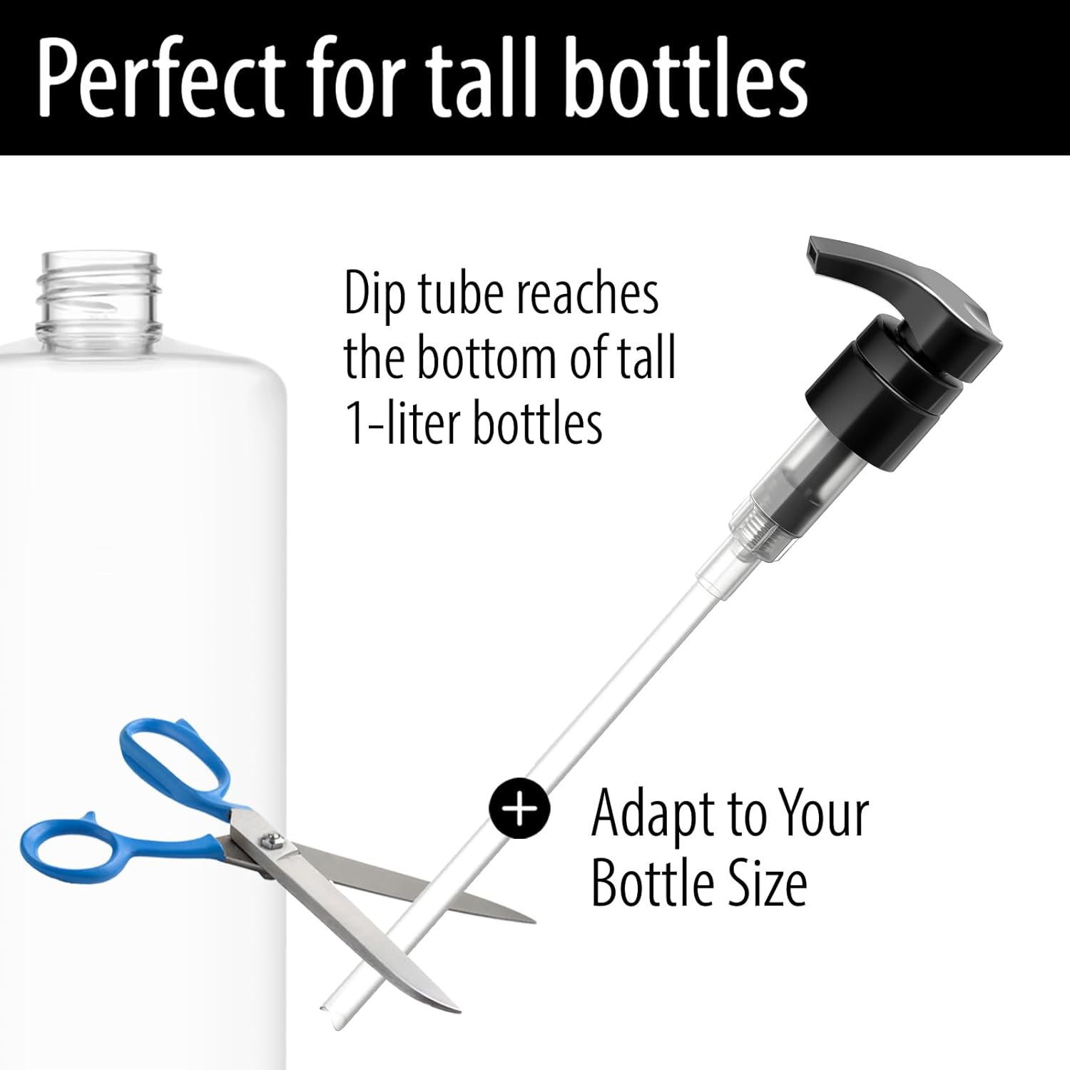 - Pump for 1 liter (32 oz. - 33.8 oz.) Bottles of Shampoo, Conditioner, Lotion, Gel, etc