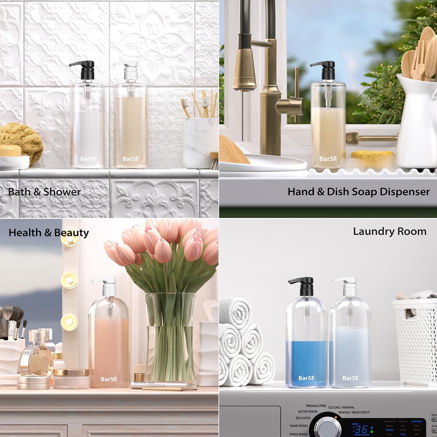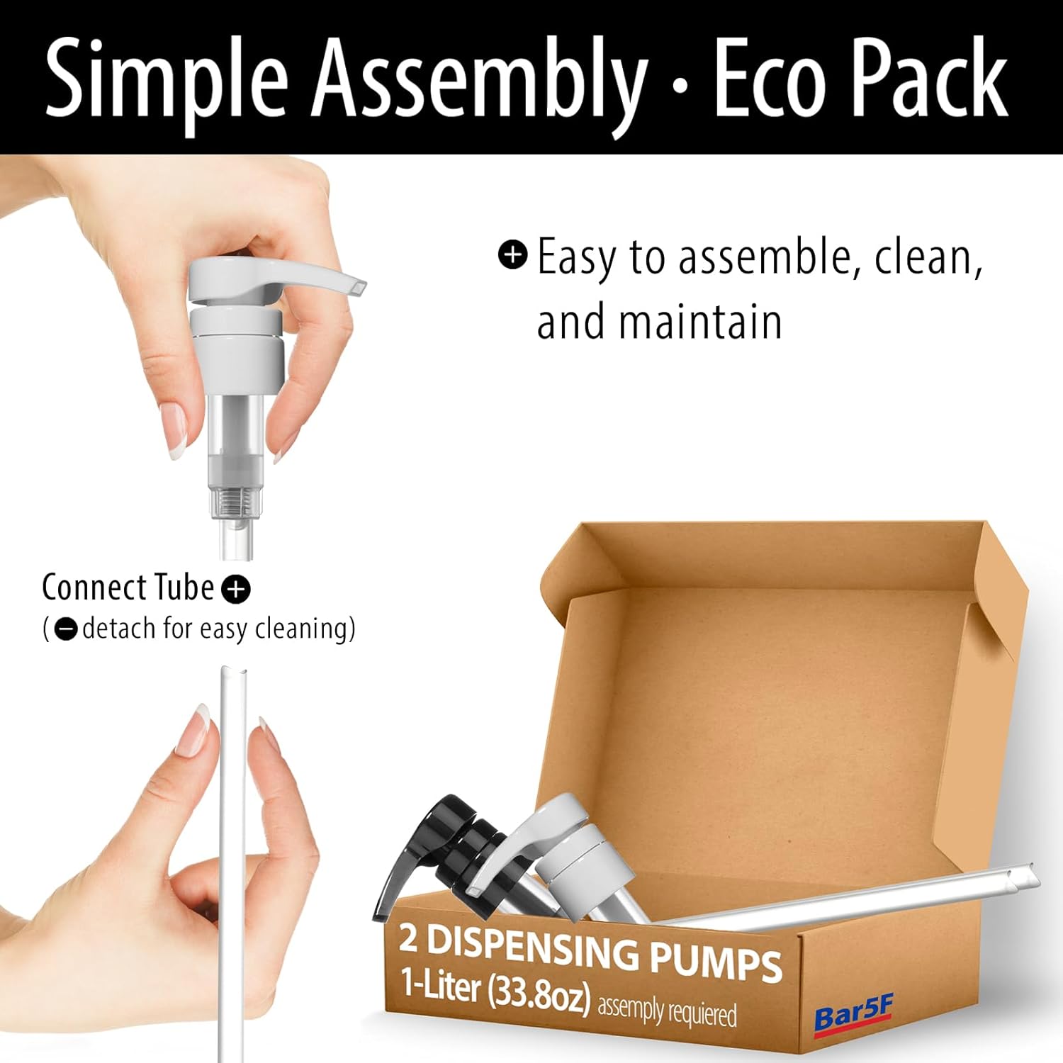 Bar5F Universal Pumps for Shampoo Conditioner Lotion Body Wash, Fits 1" Inch Bottle Necks, 1 Liter 33.8-Ounce Bottles (Black and White)