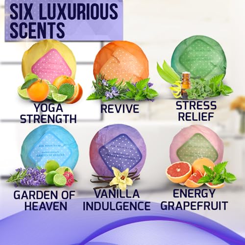 - SIX SCENTS: This bath bomb gift set features six different aromas to help you both relax and recharge; Featuring a blend of ylang ylang, lavender and marjoram to help reduce stress as well as uplifting combinations like citrus and bergamot for invigoration, Pure Nature Lux Spa¡¯s bath products are the obvious choice for people who like to indulge in luxury