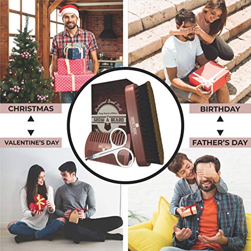 Beard Brush For Men & Beard Comb Set w/Mustache Scissors Grooming Kit, Natural Boar Bristle Brush, Dual Action Wood Comb, And Travel Bag Great For Christmas Gift