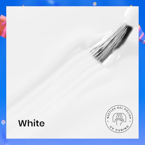 Beetles 3Pcs 15ml White Gel Nail Polish and No Wipe Gel Top Coat & Base Coat Halloween Set, Soak Off UV Lamp and Long Lasting Glossy Top Coat French Manicure Art Design Kit