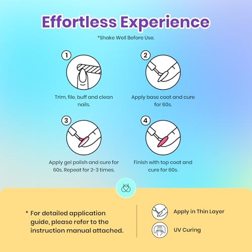 - Speed Curing with LED Nail Lamp: The nail gel polish Beauty Gift Sets need to be cured under LED Dryer Lamp. Average for LED Lamp 60-120 secs. Kindly note: After openning valid for 12 months.This item is UV gel. It is still sticky after curing. It must be used with a base and top coat!