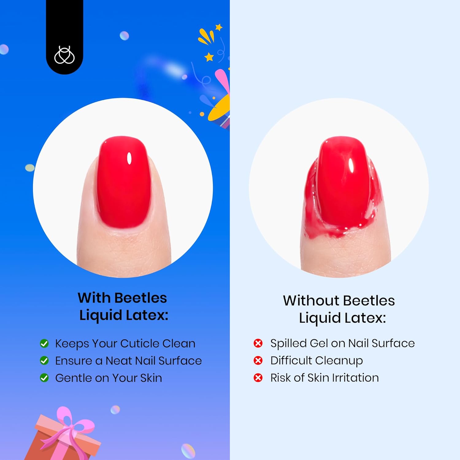 Beetles Liquid Latex for Nail 15ml - Peel off Nail Polish Cuticle Guard with Plastic Nail Care Stick Nails Design Air-Dry Liquid Latex Barrier for Protector Fingers