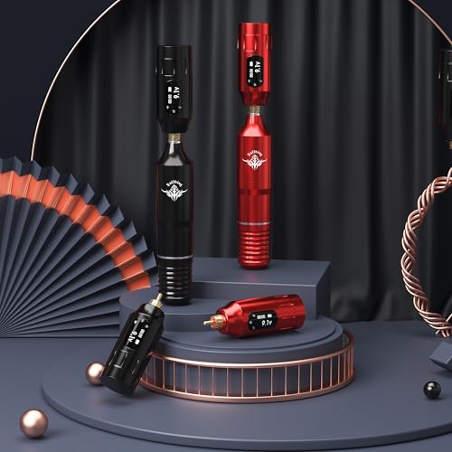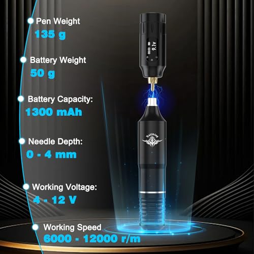 - ???ROTATING TATTOO GUN: Tattoo gun kit for beginners is equipped with a powerful customized motor and advanced power transmission system, high power, low noise, adjustable working voltage of 4V - 12V, Ensuring stable, reliable, and quiet operation of tattoo work. Also, tattoo pen is compatible with all needles. Tattoo gun is made of high-quality aluminum alloy material, with an ergonomic design that is comfortable to hold, slip resistant, suitable for tattoo work