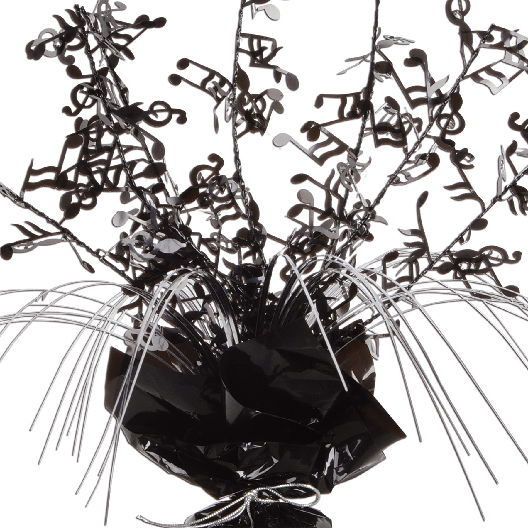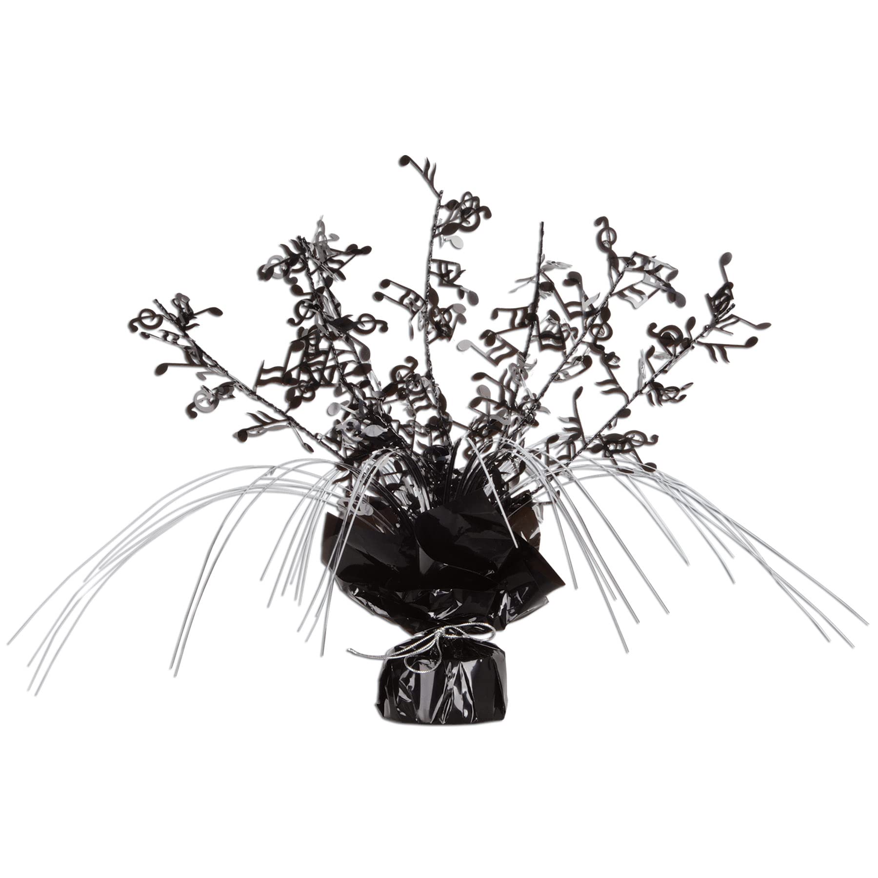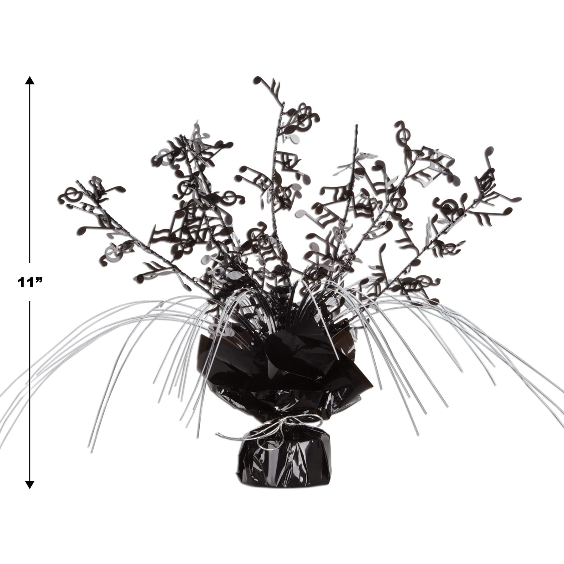 Details: Beistle S57921AZ2 musical notes gleam 'N spray centerpiece. The package contains 2 centerpieces. Each centerpiece measures 11 inches tall. They are metallic and shiny. Great centerpieces for a music themed event!