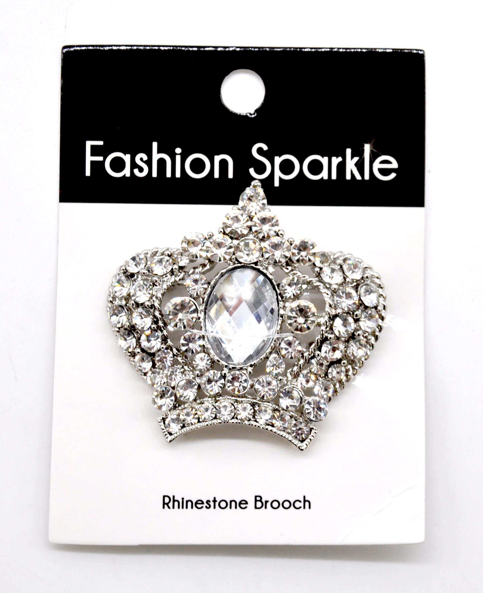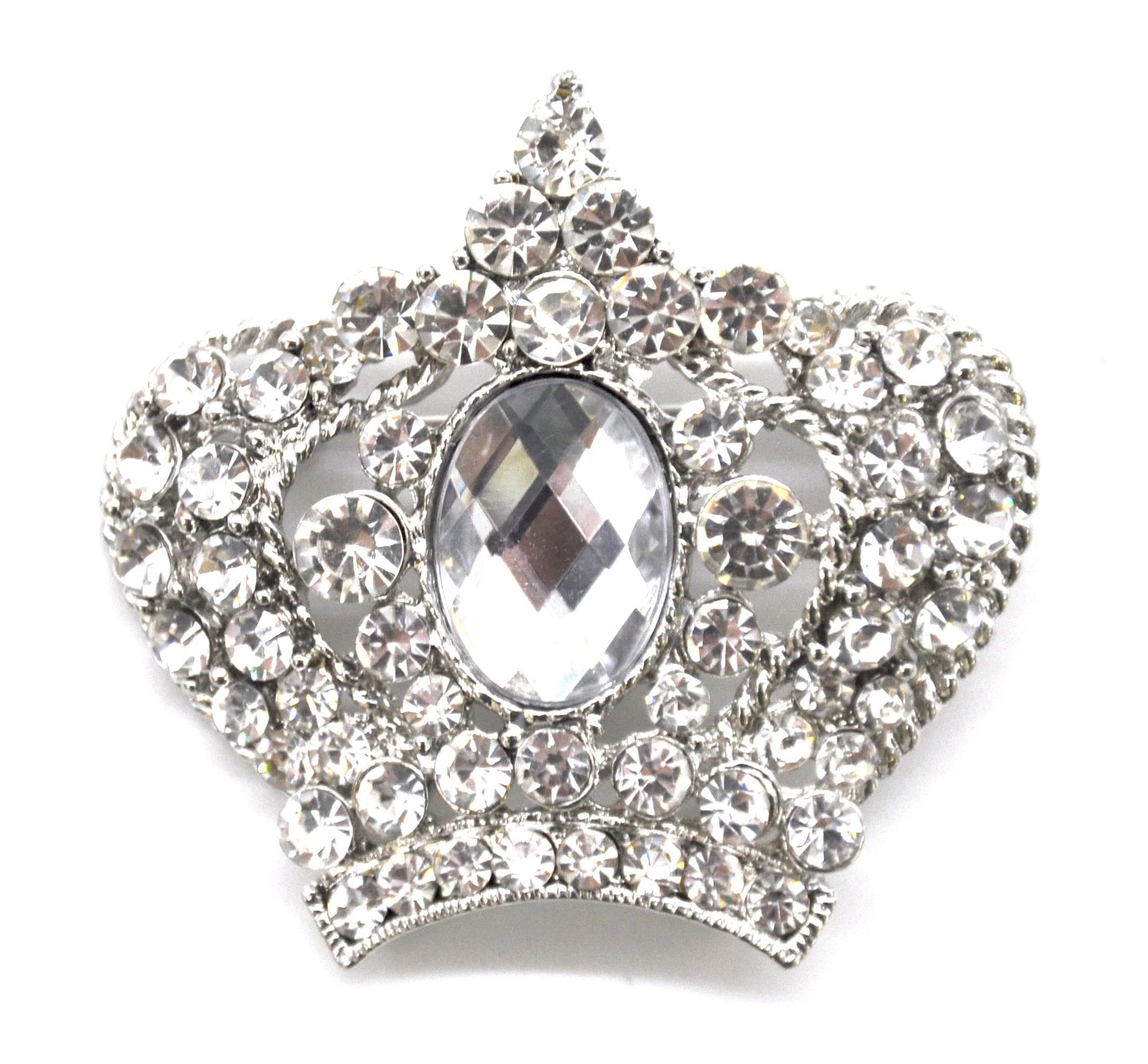 Belagio Enterprises 2 1/2-Inch Crown Rhinestone Brooch | BW-141 Silver