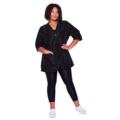Betty Dain A Size Above Plus Size Salon Stylist Jacket, Cut for Curves, Three-quarter Length Sleeves, Button Down Front, Two Lower Front Pockets, Lightweight, Water Resistant Nylon/Poly, Black, 3X