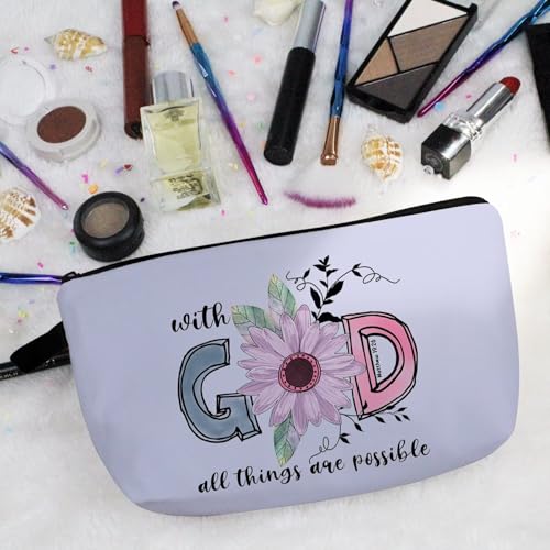 Bible Quotes Makeup Bag Small Organizer Zipper Pouch With God All Things Are Possible Cosmetic Bag Christian Present for Women Friends