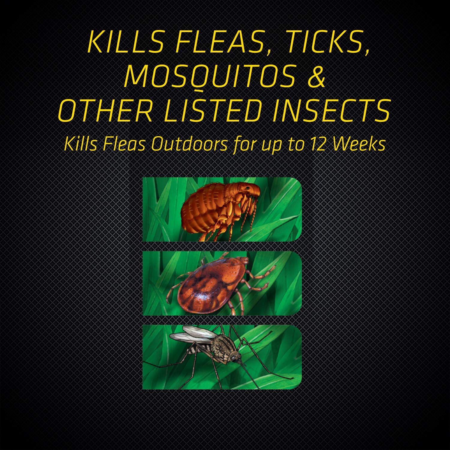 - Keeps killing: kills fleas outdoors for up to 12 weeks