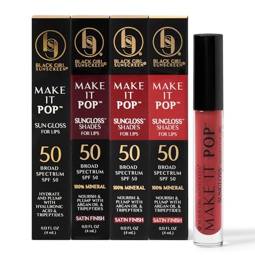 Black Girl Sunscreen Make It Pop Sungloss & Sungloss Shades for Women - SPF 50 Tinted Sunscreen Lip Gloss, Sun Protection, Hydrating - 4 Pack (Clear Skyes, Cherry Noir, Red Wine, French Kiss)